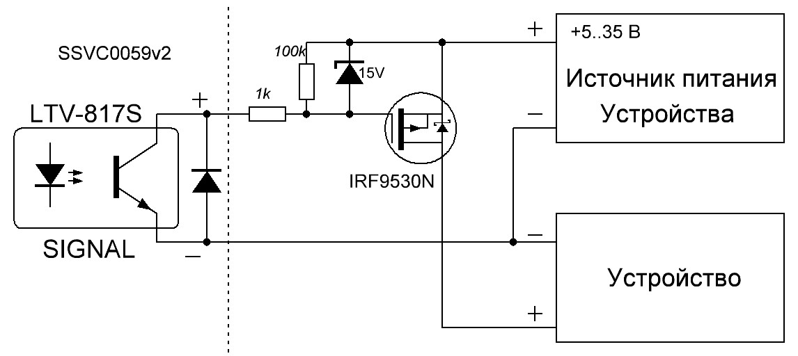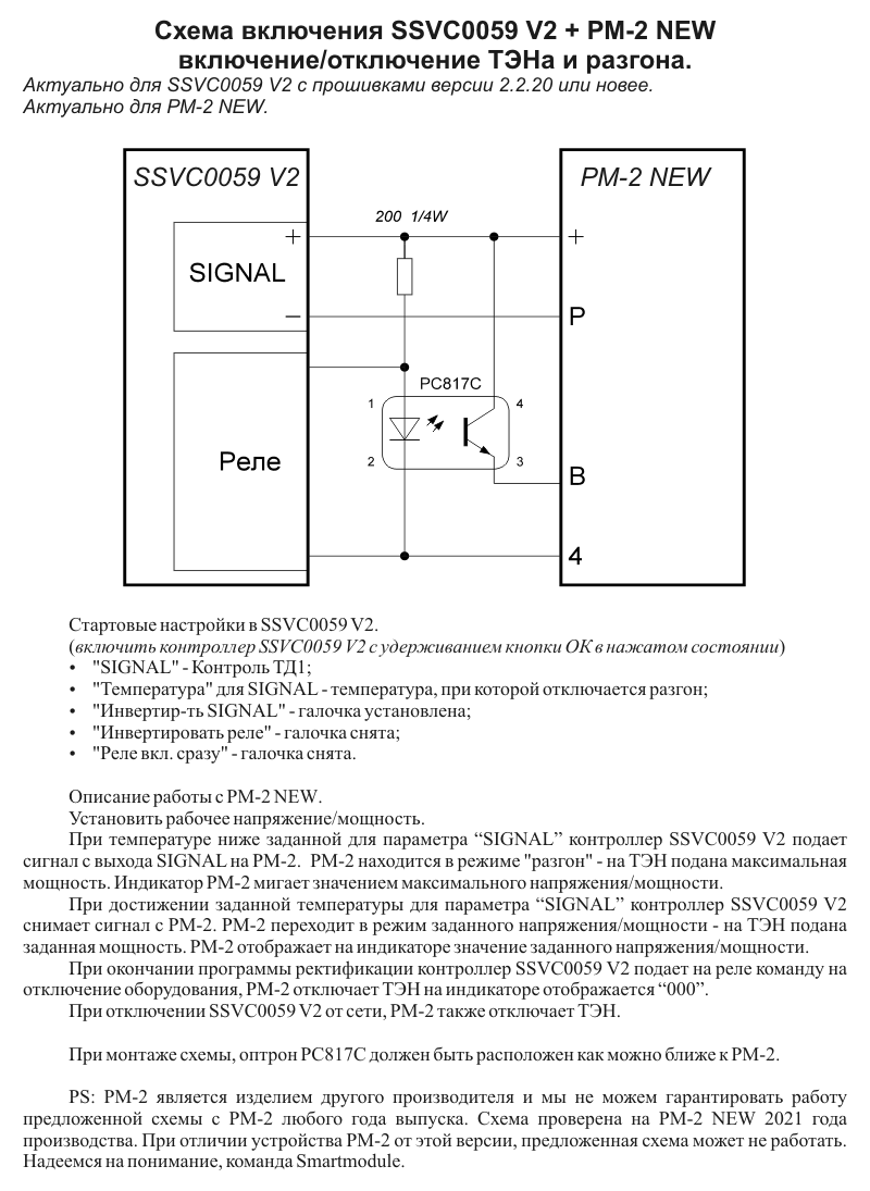 - SIGNAL - выход с опторазвязкой. Выход полярный, максимальное напряжение - 35 В, максимальный ток - 20 мА. Логика работы выхода SIGNAL зависит от используемой версии прошивки. В заводской прошивке контакты замкнуты при ошибке датчика. В прошивках серии Pro (2.2.* и 2.3.*) выход сигнал используется для переключения мощности «разгон» / «работа».