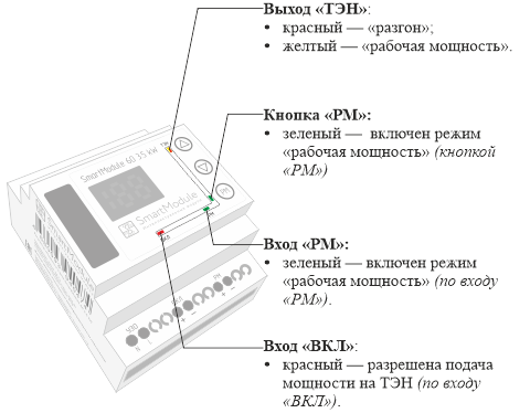 Мощность задаётся в процентах от номинальной мощности ТЭНа. - Индикация статуса.